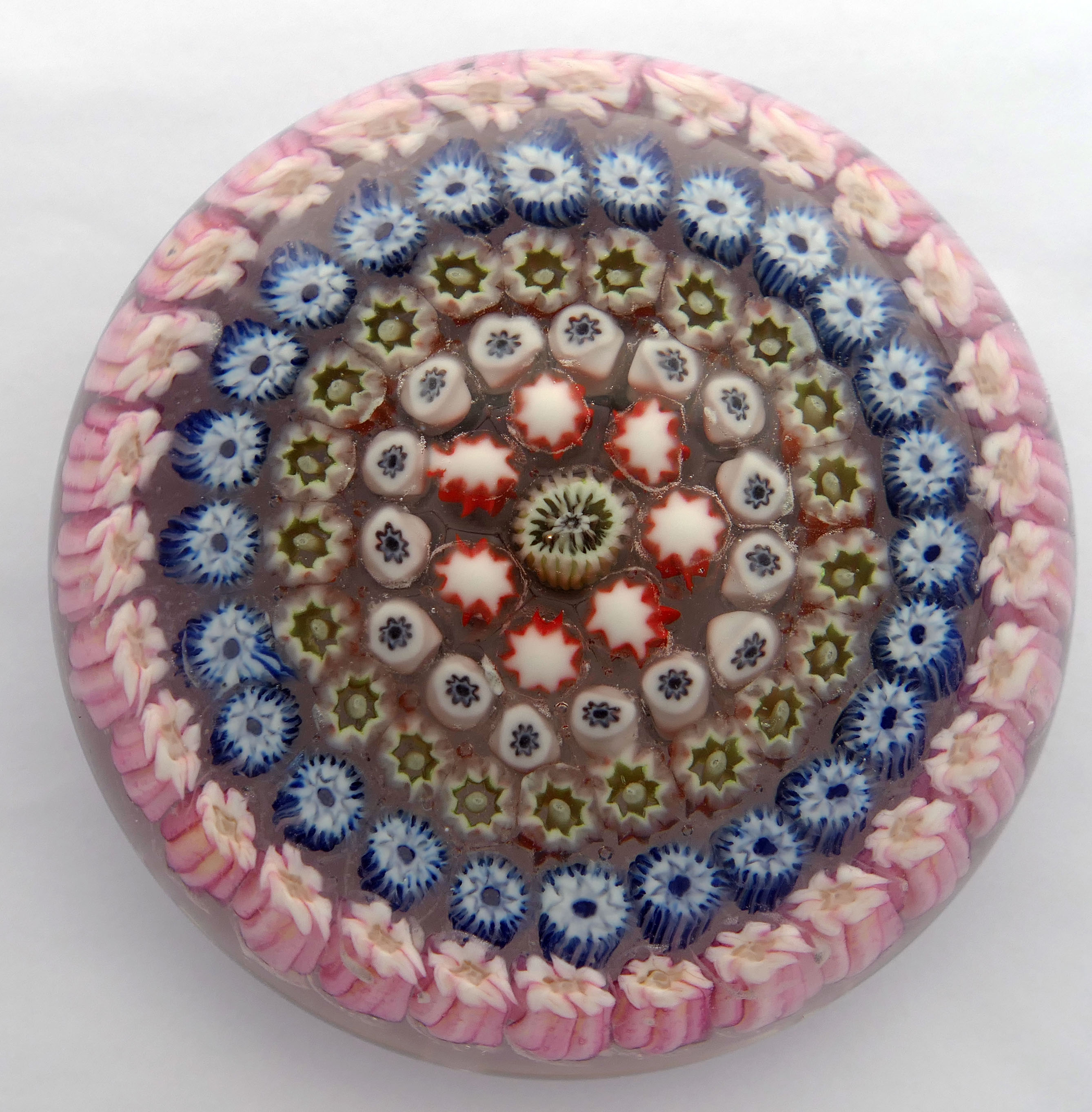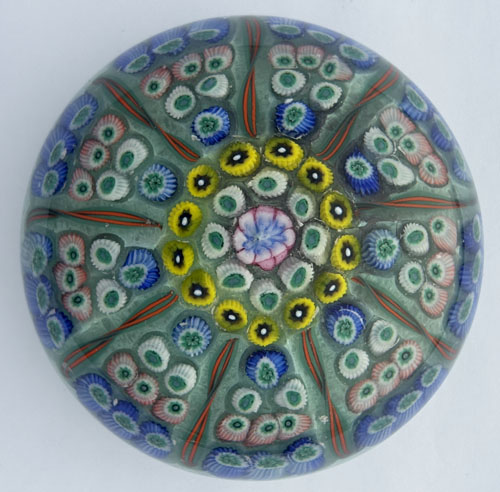 weight, central "P" cane surrounded by four rings of